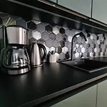 Daire teras ile beraber kahve/çay makinesi, oturma alanı, uydu kanallı düz ekran televizyon gibi olanaklara sahip odalar sunmaktadır. Dairede donanımlı mini mutfak ile 1 banyo odası vardır.